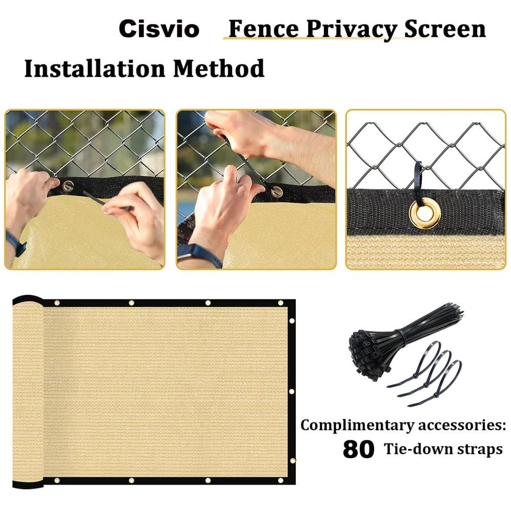What can Cisvio Fence privacy Screen do for you?If you have garden or yard with flower and plant, our products can protect them from the damage of bad weather like heavy sun exposure. And thank to UV block breathable material, they can also allow the air to go through which is very good for your plant and more convenient for your routine maintenance.If privacy is an essential part of your life ,our fence privacy screen is a great alternative. The 150 GSM UV block non-recycle HDPE material may not only reach most visibility blockage but keep your yard away from other animals.If you have pets an your family members, our products are also a good choice to keep animals playing in your yard rather than barking at passing by or going out before you know it.