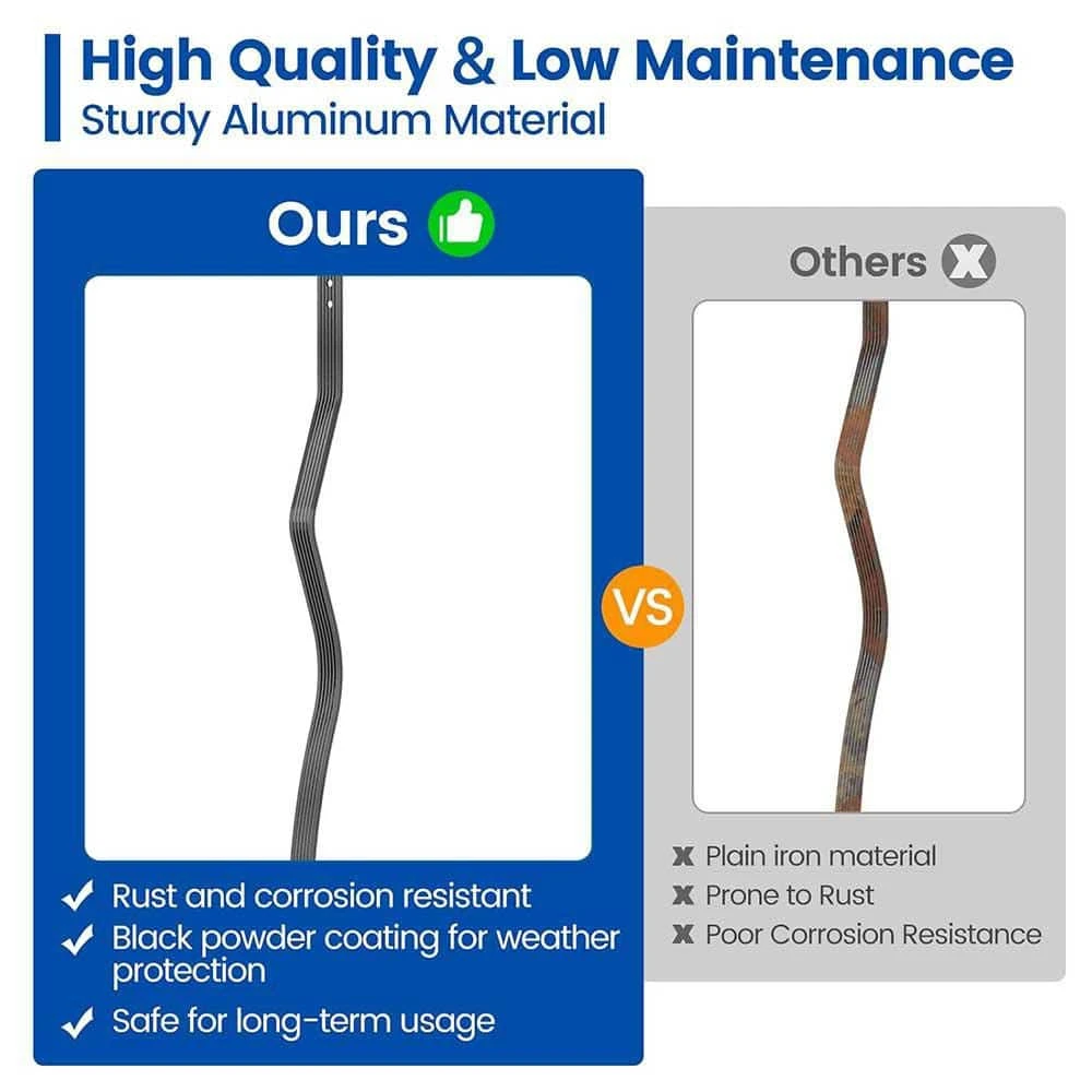 Transform your deck with the stylish elegance of these wavy aluminum deck balusters, designed to enhance both safety and aesthetics. Crafted from durable metal with a black powder-coated finish, these balusters offer exceptional corrosion and scratch resistance, ensuring low maintenance and longevity. With easy installation and wide application possibilities, they are perfect for enhancing any patio, staircase, or porch while seamlessly integrating with wood and composite decks.