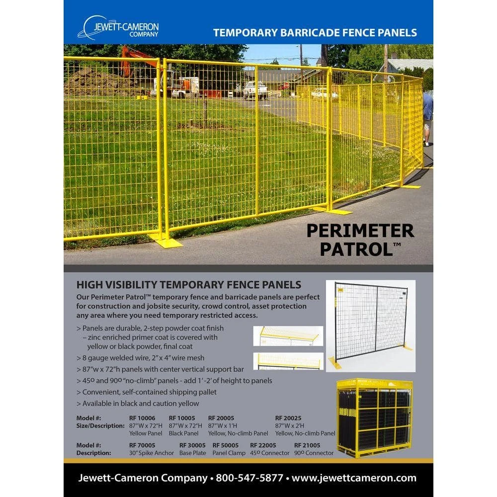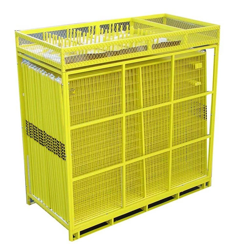 Security barriers create an enclosed space or linear fence panel for outdoor areas. Security fences are great for crowd control, job site security, storage/transport pallet systems and more. Framing is made of 1-1/8 in. Dia x 19-Gauge tubular steel. All panels include two galvanized clamps attached to each panel and 24 in. L x 9 in. W steel base plates. Safety yellow base plates allow floor anchoring for permanent installation. Wire fences are made of 8 Gauge wire in 2 in. x 4 in. welded mesh pattern. Perimeter Patrol Fences are reinforced with a vertical 1-1/8 in. square tube steel support for extra strength. Reusable Engineered Pallet is included with Perimeter Patrol 7.5 ft. panels only. Makes unloading and loading easy and safe while providing storage when panels are not in use. Designed for storage of both bases and panels.