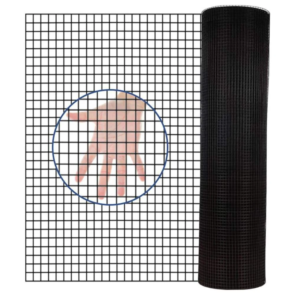 This black hardware cloth roll measures 48 in. wide by 50 ft. long and is made from durable 19-Gauge black annealed steel wire. It features a double coating for maximum rust resistance: galvanized internally and protected externally with a weather-resistant black PVC coating. With 1/2 in. x 1/2 in. mesh openings, it offers excellent protection while maintaining airflow and visibility. Packaged securely in a carton for safe delivery and storage. Engineered to meet global environmental standards, this wire mesh is built to last-even when used underground-eliminating the need for frequent replacement. Ideal for safeguarding chickens, ducks, rabbits, and other farm animals from predators such as raccoons, rattlesnakes, and other intruders. Perfect for use as chicken fencing, rabbit wire, or a duck run, this roll cage mesh offers peace of mind with its strong construction and long-lasting reliability. The wire is easy to cut and shape to your needs, allowing for versatile DIY applications. Whether you’re building a poultry pen, garden fence, or protective barrier, this hardware cloth delivers both strength and durability.