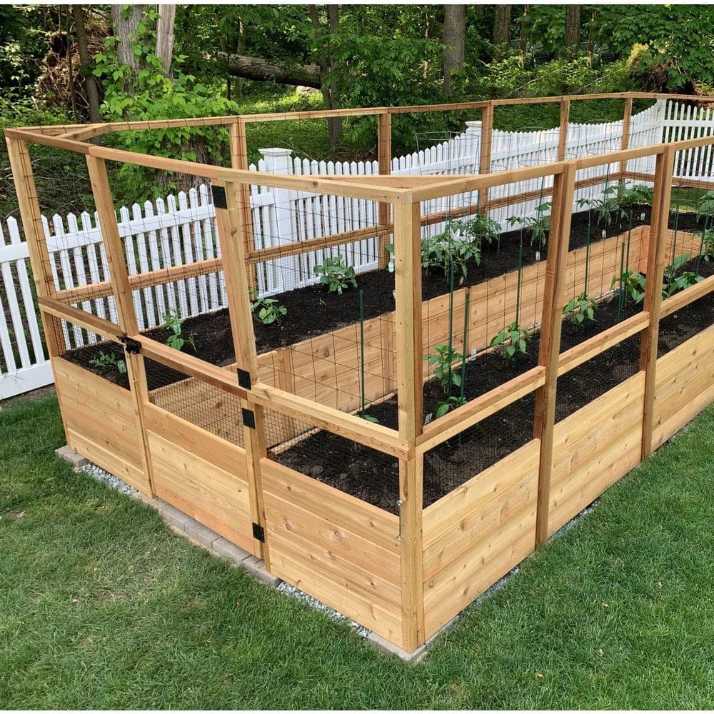 The 8 ft. x 16 ft. Cedar Garden in a Box with Deer Fence Kit takes Urban Gardening to a whole new level. Big in size and easy to access from all sides makes crowing crops for a family of 4 or more a breeze. Panelized Cedar Walls will easily assemble. Climbing plants, tomatoes or runner beans will have lots of room to grow. Every wall panel allows 21.5 in. D of growing height with an attached wire mesh screened frame. Total height of 33.5 in. will keep dogs and pesky pests away. Weeding and planting will be a breeze with easy access in and out of your garden bed through the door with an attractive latch. It’s big in size and easy to access, but with the added deer fence to deter larger, pesky critters or just to grow your plants and crops bigger and taller. At 67 in. in total height, the mesh fencing will help your plants grow stronger and taller. The manufacturer will call to offer site preparation and discuss delivery before shipping.