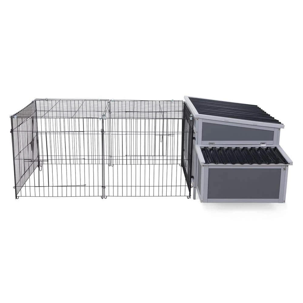 - Weatherproof for outdoors: the resting hutch is made of sturdy pinewood with PVC roofs to keep both the Sun and rain out the run is made of strong iron wire with a sprayed finish for long-time use