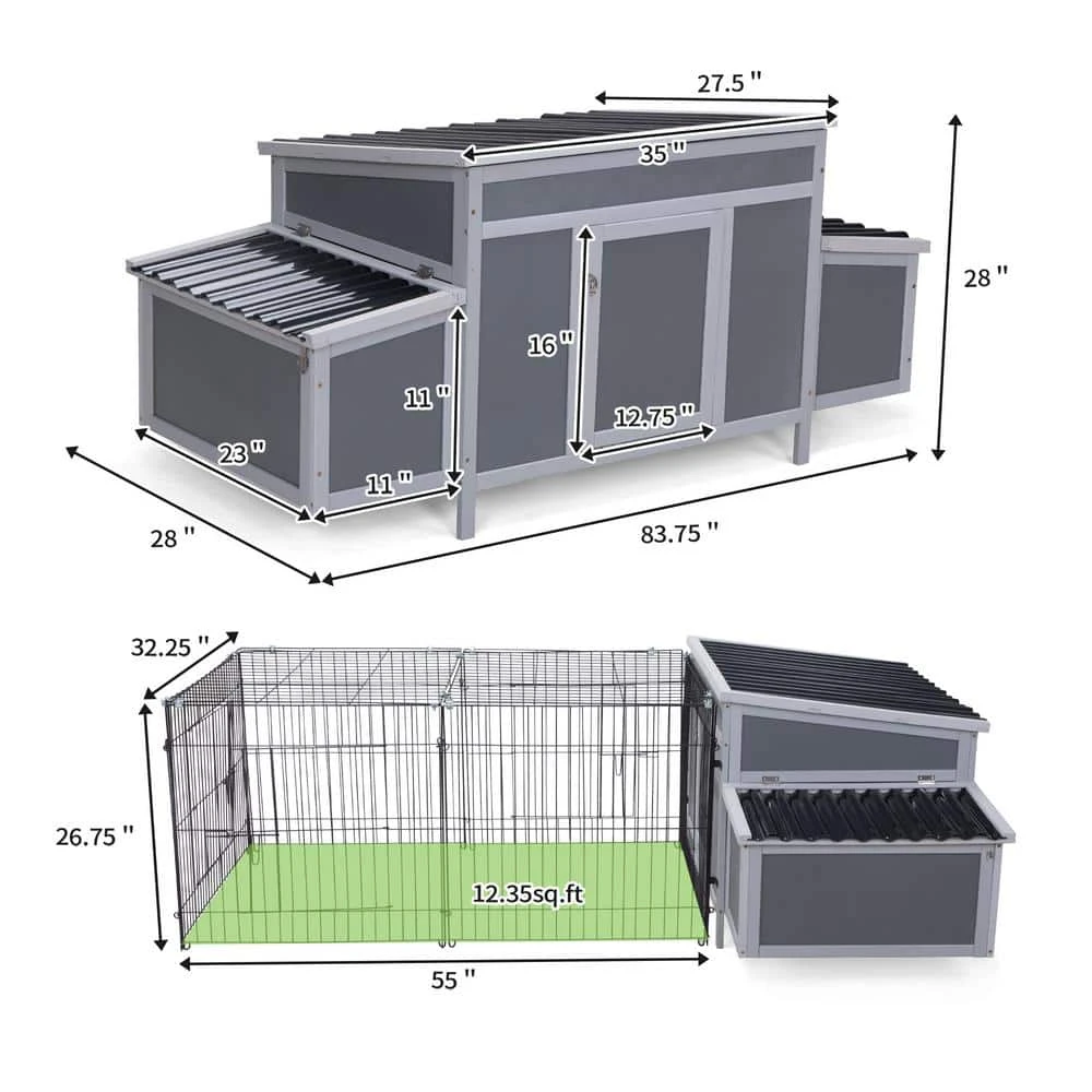 - 2-in-1 chicken house: this chicken cage designed with a private retreat for rest, 2 nesting boxes for eggs and a large run for roaming is perfect for hens, rabbits, ducks, etc.