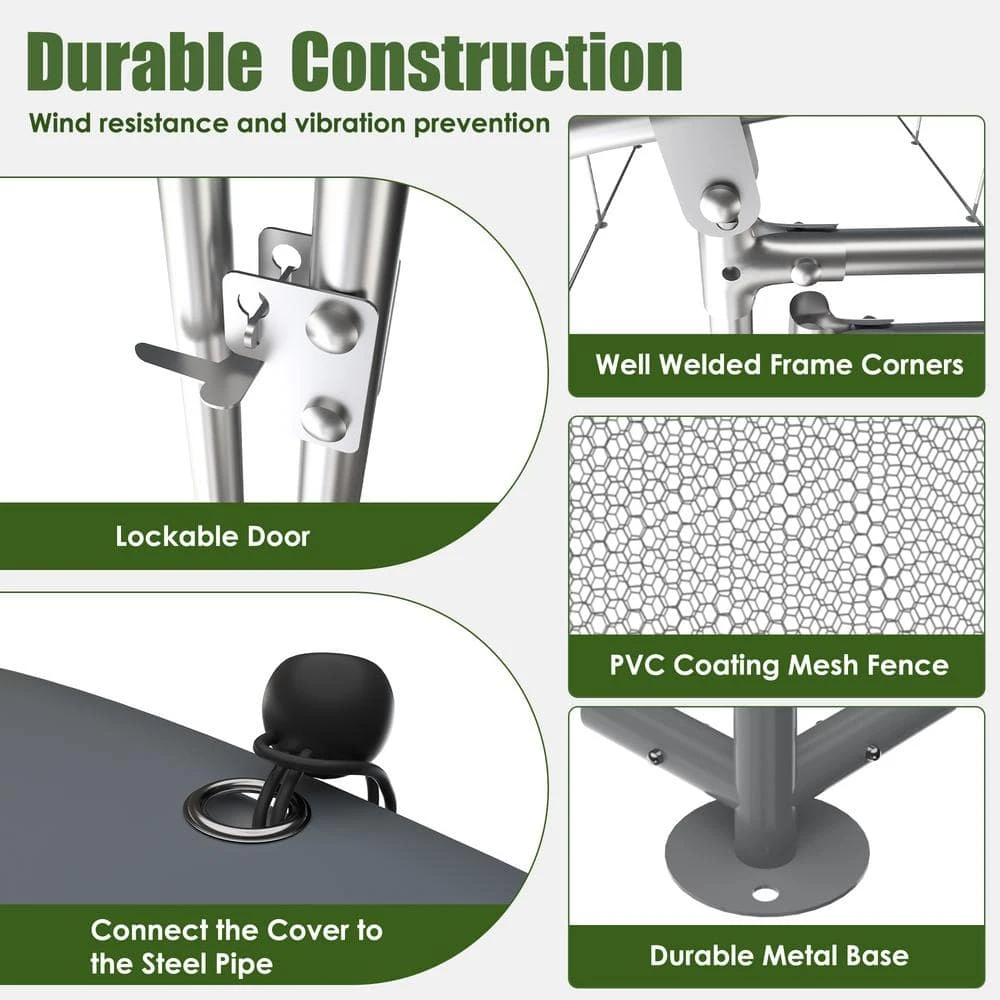 - Durable steel structure our heavy-duty metal coop is made of the high-quality steel frame, a large metal coop for long-term use is the point we keep in mind all the time when we produce this product, so we added additional support columns and triangular supports, the stainless steel coupled with galvanizing technology resistance of the cage