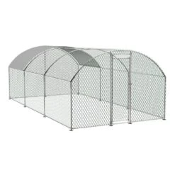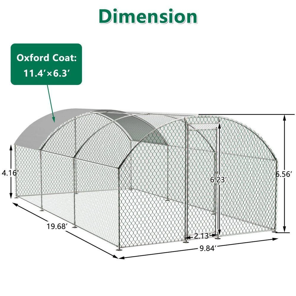 - And the coop is also stably positioned to withstand wind and snow, the top is covered with a durable sun and rain tarpaulin that protects the steel frame, wire mesh and the animals beneath it, the tarpaulin is strong enough to avoid tearing or fading over time