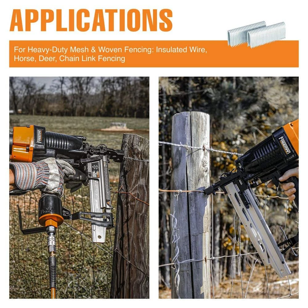 - Compatible with most 9-Gauge fencing staplers capable of firing 1-3/4 in. glue collated fencing staples, such as the Freeman PE20VFS9, G2FS9 and PFS9, Estwing EFS9, Stockade ST-400, Powermate FS2P, and Iron Horse IH-FS-1 (not compatible with DeWalt or Milwaukee fencing staplers)