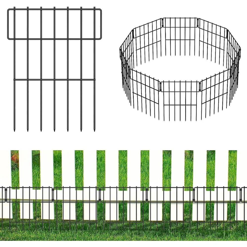 - 10-pack garden fence border: our garden fencing measures 12 in. W x 16.7 in. H in each panel, the spike spacing of the wire fencing is 1.65 in. which is more effective at blocking small animals, overall length: 10 ft.