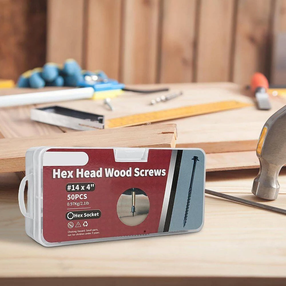 - This package includes 50 pieces of #14 x 4 hex head wood screws and a hexagon socket, all conveniently stored in a box for easy transport and organization, weighing just 2.16 lbs.