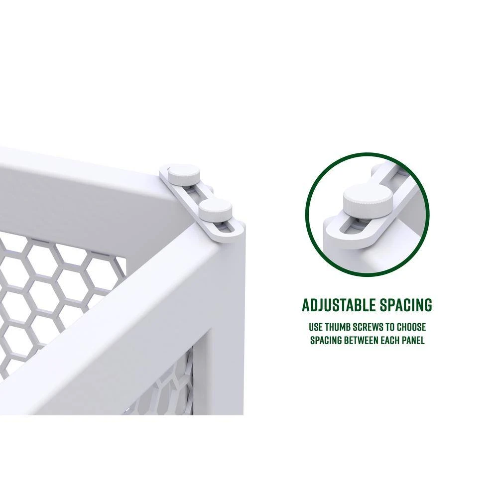 - Includes 4-fence panels, assembled weight: 15.3 lbs. 7 kg