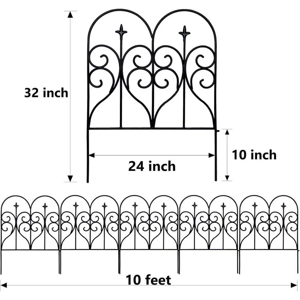 - Decorative garden fence stands at 32 high and stretches 10 ft. long, made from rustproof metal for durability. its sturdy construction ensures long-lasting use in any outdoor setting