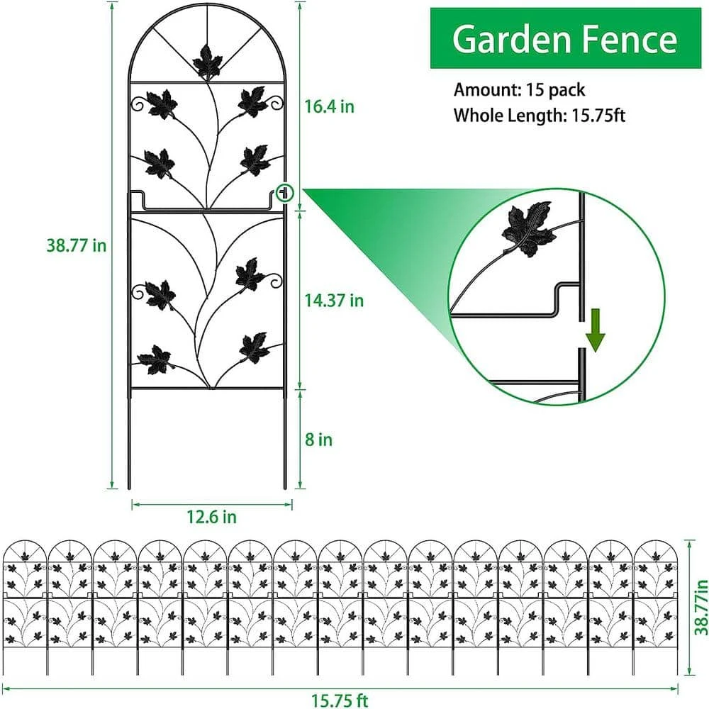 - Size: this black metal garden fence border is tall fencing with single panel size of 38 in. (H) x 13 in. (W), 15 panels in total, the whole length is 16 ft. long, these wire fence panels can be extended to different shapes according to your special uses of path edging, perfect for your beautiful garden, yard and patio