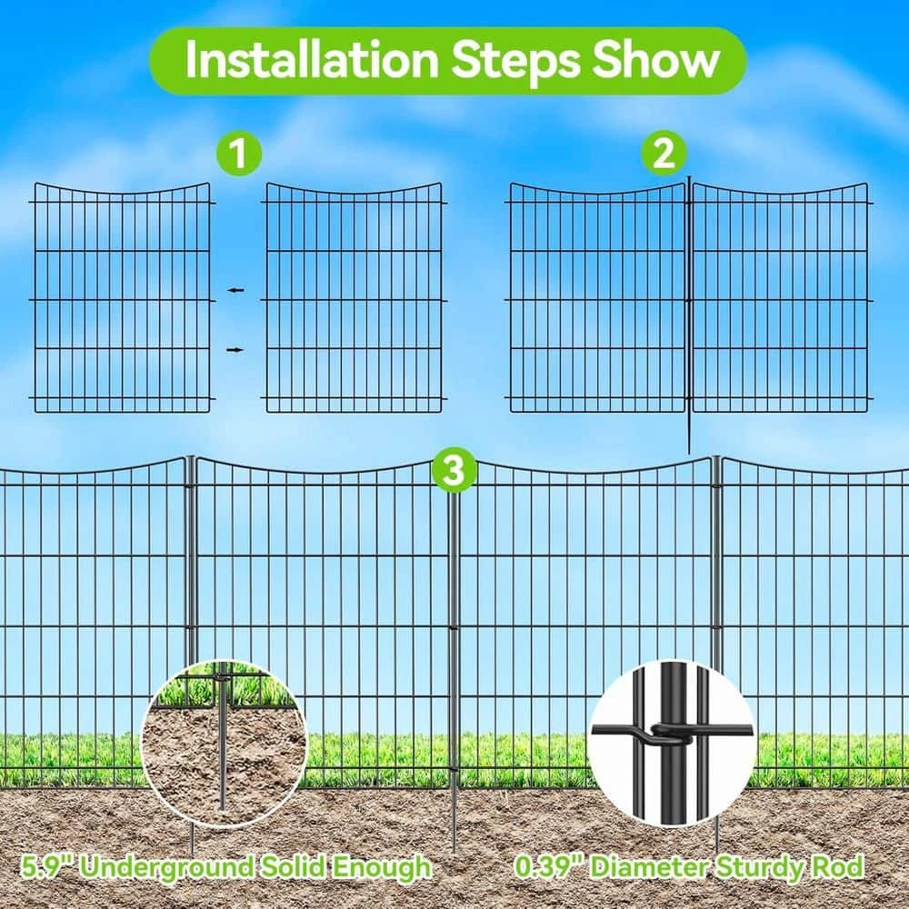 Enhance your outdoor space with this decorative garden fence, featuring a rustproof and sturdy construction that withstands harsh weather, ensuring long-lasting beauty. With its flexible, no-dig design, you can easily configure the 6 panels into any shape to suit your garden, patio, or even create a temporary pet playpen. Installation is a breeze; simply insert the metal stakes, and transform your yard into an elegant and secure haven for plants and pets alike.