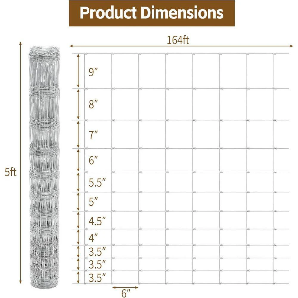 Crafted from 0.078 in. high-quality steel wire with a hot-dip galvanized finish, this farm fence offers exceptional strength, rust resistance, and long-lasting durability. Featuring advanced twisting weaving technology, it ensures secure connections that won’t loosen over time. The graduated mesh design, narrowing to 6 in. prevents small animals from escaping while reducing material costs. Perfect for protecting livestock, pets, gardens, and more, it’s built to withstand harsh weather and meet diverse agricultural needs.