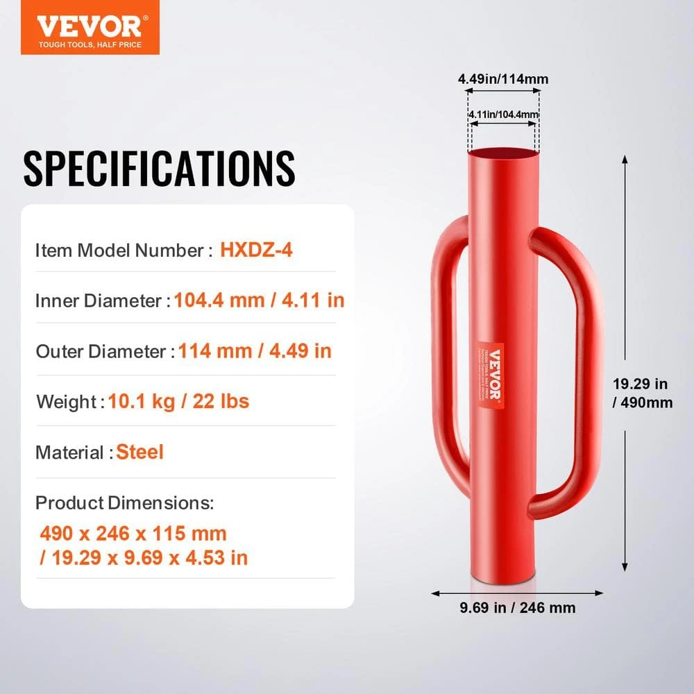 - Versatile pile driver: designed with a 4.11- in. inner diameter, this pile driver fits a variety of posts and stakes, crafted from durable carbon steel with a rust-resistant coating, it ensures long-lasting performance, the ergonomic handle enhances comfort and efficiency, making it ideal for diverse applications from fencing to construction