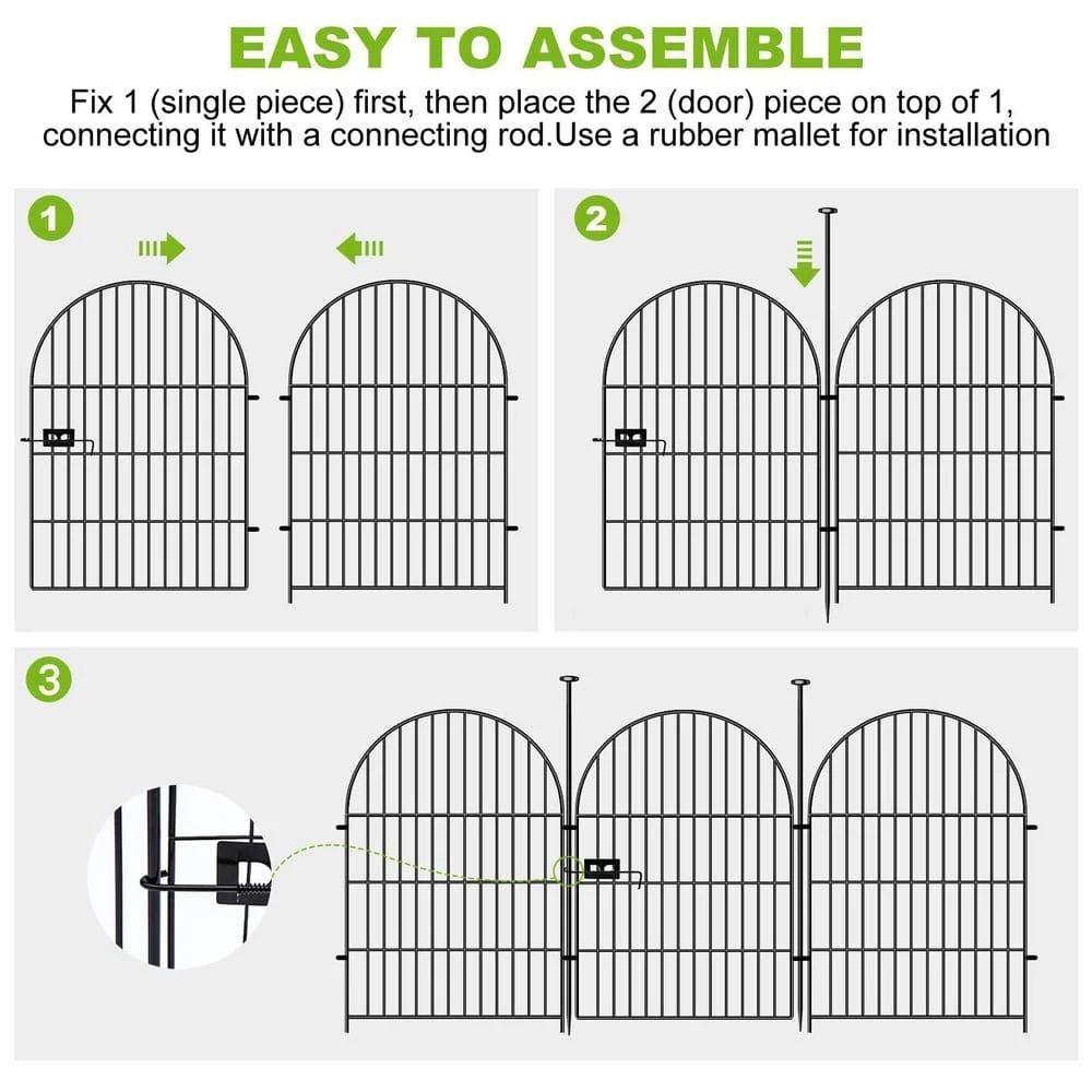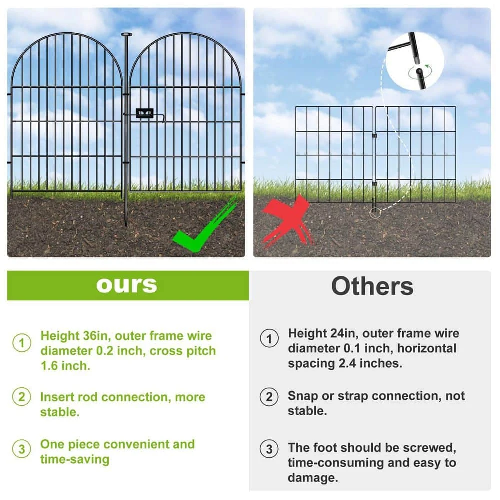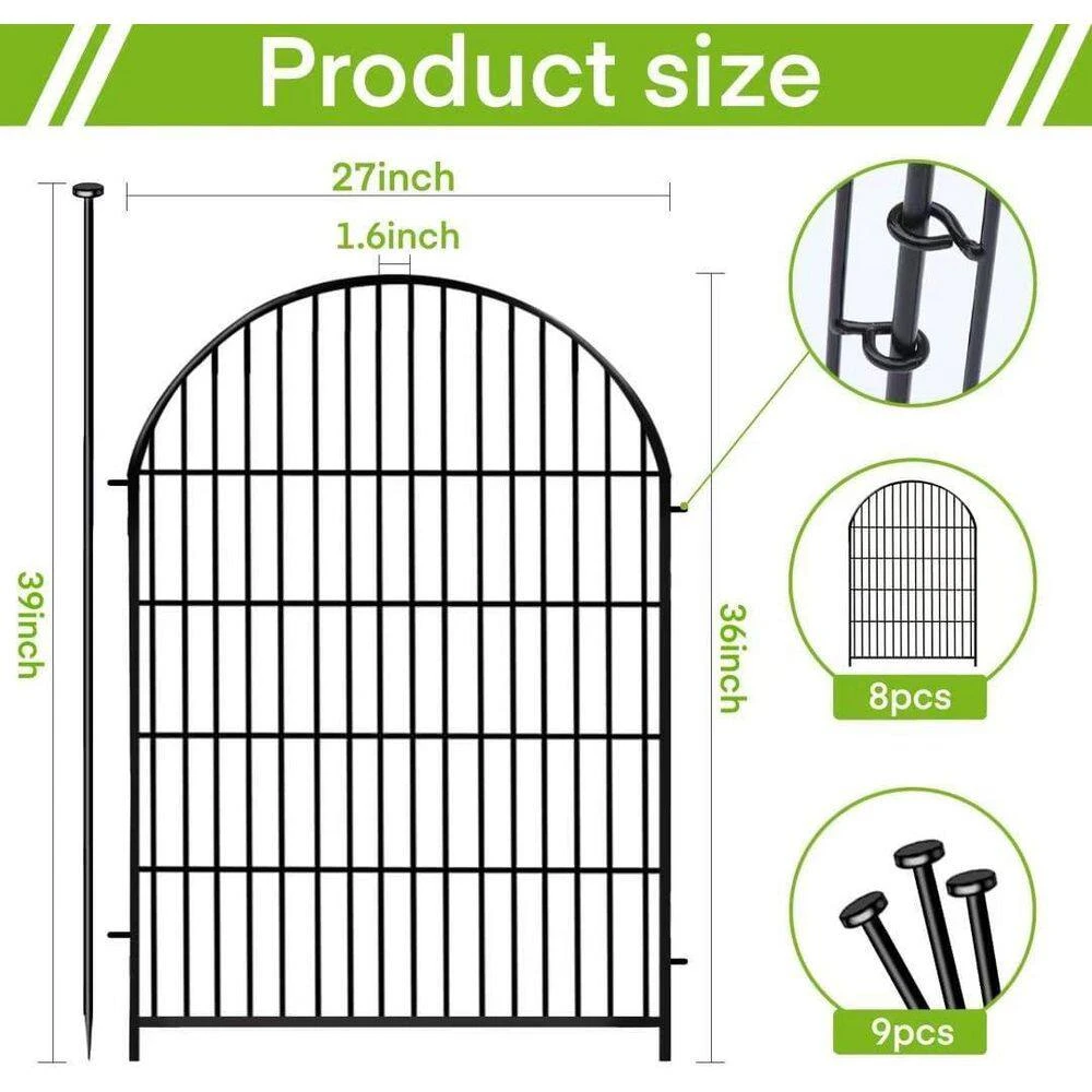 - Enhance your garden’s aesthetics with a classic arched design, featuring a height of 36 inches and total length of 17.5 ft, offering both style and practicality for your outdoor space. Crafted from thick iron wire with a black rustproof coating, this fence is designed for strength and durability, ensuring long-lasting protection against animal intrusion.