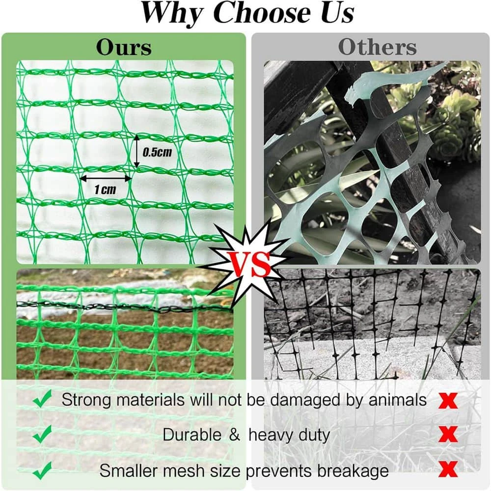 - Durable and heavy-duty design of this garden fence, enhanced by advanced warp knitting technology, ensures remarkable tear and UV resistance. it withstands harsh outdoor conditions and animal interaction