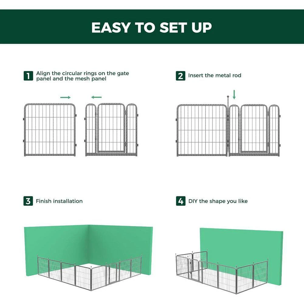- Our metal garden fence provides a strong barrier to prevent your dog,cats from playing by digging and chewing, ensuring a safe, leashed area for your pets.