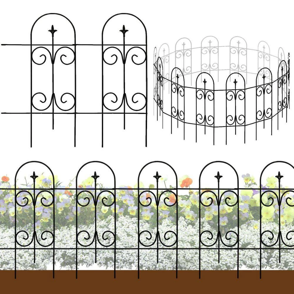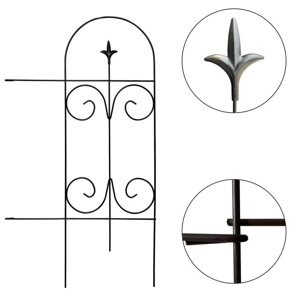 Perfect for creating elegant borders around plants, walkways, or patios, this iron fence is ideal for garden edging, flowerbeds, vegetable borders, and more. It also works well as a small animal barrier, adding both functionality and style to your outdoor space. Its rust-resistant finish ensures it will maintain its beauty and function for years to come.