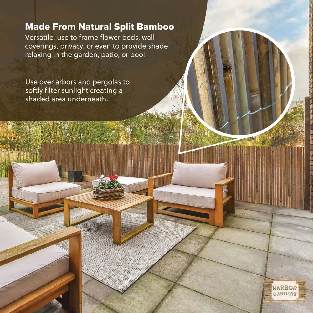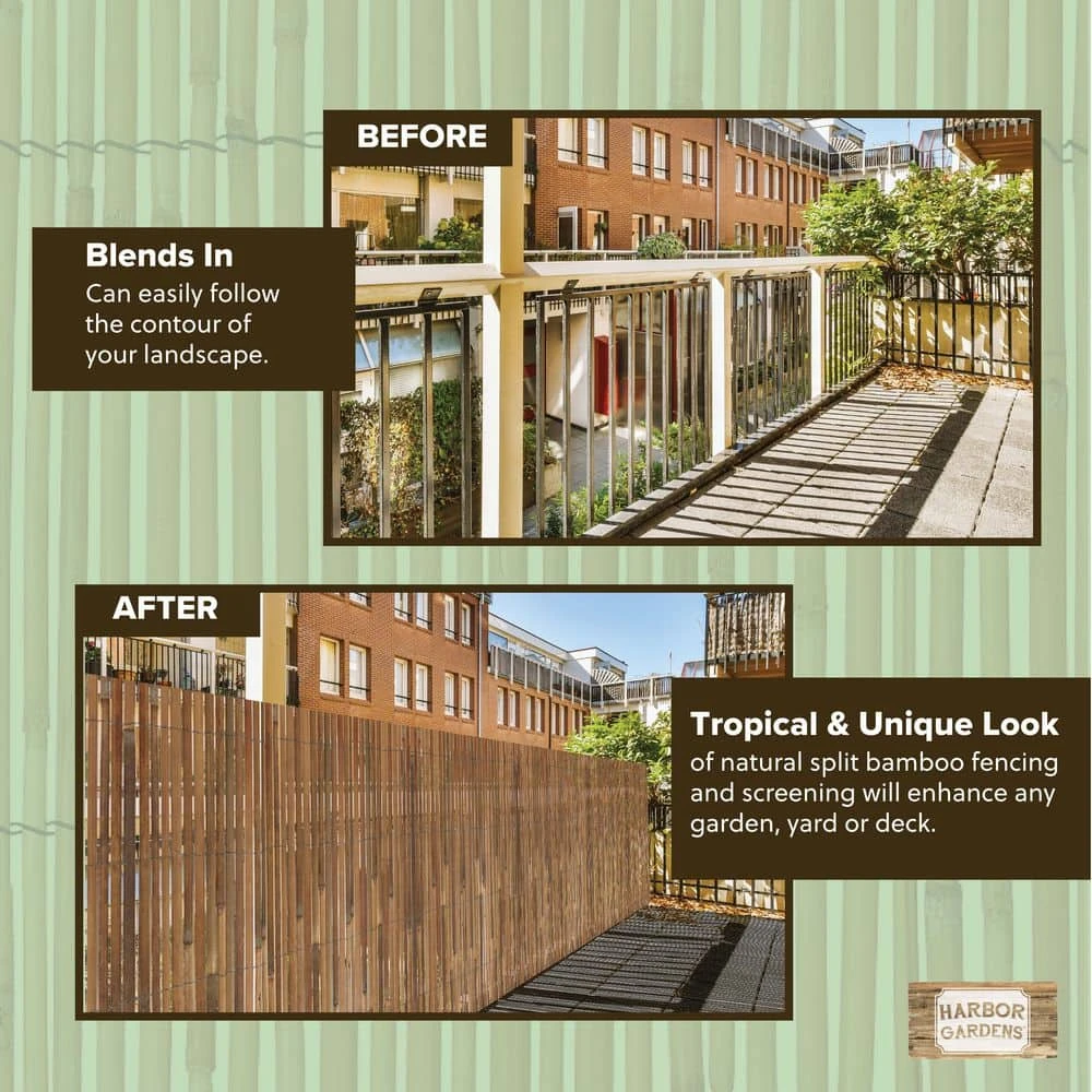 Harbor Gardens Split Bamboo 10 ft. fencing is a durable and attractive addition to your outdoor space. it can be used as a boundary fence or to create a privacy area in your yard or garden. The fencing can be adhered to an already existing fence or attached to more traditional posts.