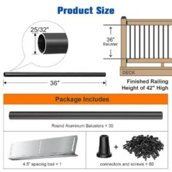 26 In. H X 0.75 In. W Black Aluminum Square Deck Baluster Railing Kit For Porch And Fencing 100-Pack