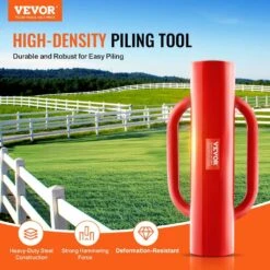 Fence Post Driver With Handles 4.11″ Inner Diameter T-Post Pole Pounder 22lbs. Carbon Steel Farm Fencing Hole Digger Red