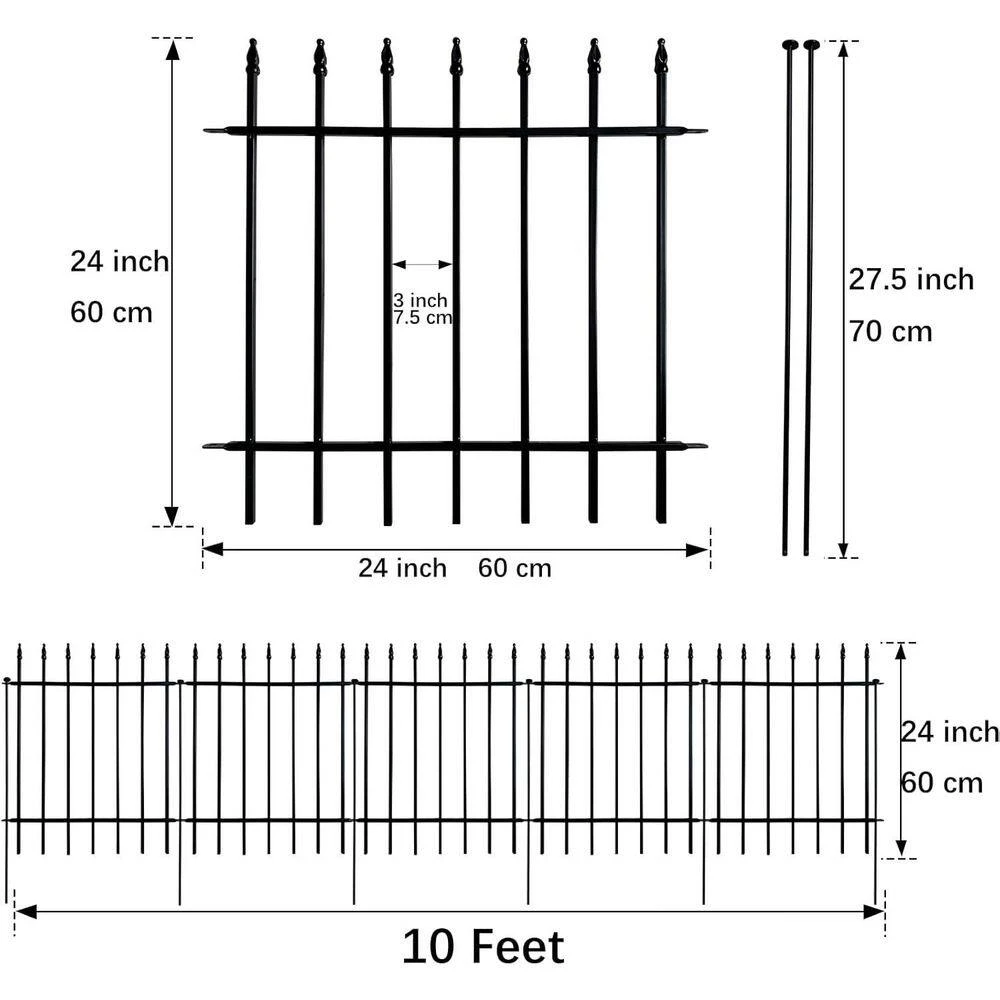 - Garden fence set includes 5-panels, each measuring 24 wide x 24 high, for a total length of 10 ft. offering ample coverage for your garden or yard while maintaining an elegant appearance