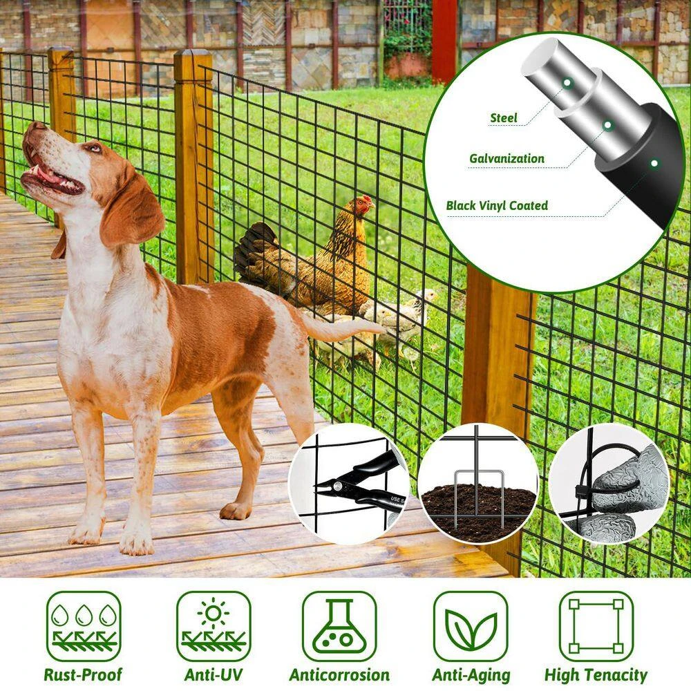 - Welded wire fence boasts a durable, long-lasting construction with heavy-duty galvanized wire, complemented by a black vinyl coating for added rust and corrosion resistance, ideal for outdoor use in various climates