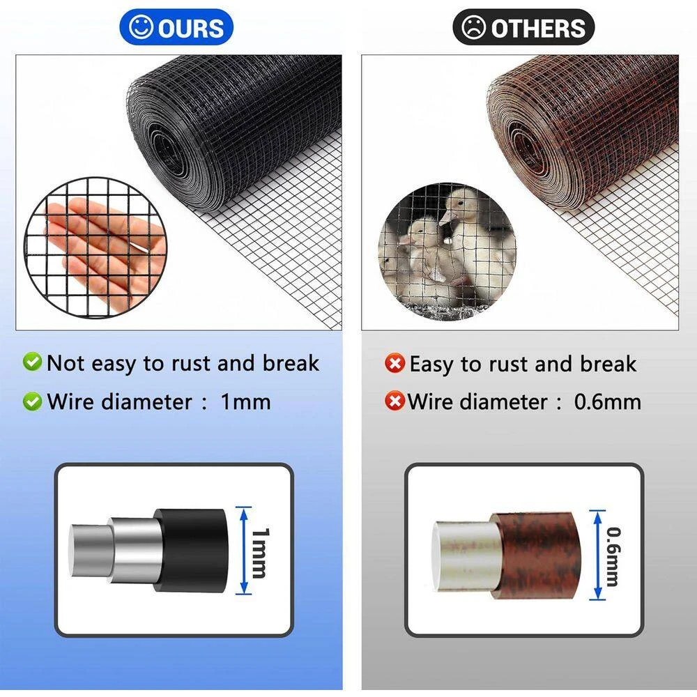 Upgrade your home improvement projects with the Black Hardware Cloth, featuring a robust 16-gauge galvanized steel wire mesh with a 1-inch square hole grid that ensures durability and strength. The powder-coated design prevents rust and corrosion, offering a smooth, beautiful finish that resists tears, perfect for various applications like animal fencing, plant protection, and more. With a generous 36-inch height and 100-foot length, this easy-to-cut roll is your ultimate solution for keeping unwanted critters out, making it an essential addition to any home or garden project.