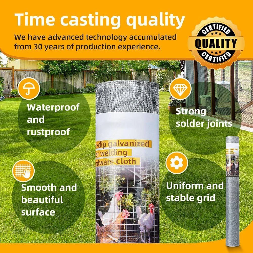 - Crafted from high-quality low carbon steel wire, this hardware cloth boasts superior strength, toughness, and ductility, ensuring a robust and reliable solution for all your fencing needs. Utilizing a professional galvanizing process post-welding, this product ensures all joints are fully protected, preventing rust and significantly extending its lifespan.