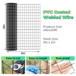 50ft L X 0. 05in W X 48in H Metal Wire Mesh, PVC Coated Garden Border Fencing Roll Vinyl Coating Black