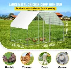 Large Metal Chicken Coop With Run 6.5 Ft. X 9.8 Ft. X 6.5 Ft. Large Space Silver Barbed Wire Fencing