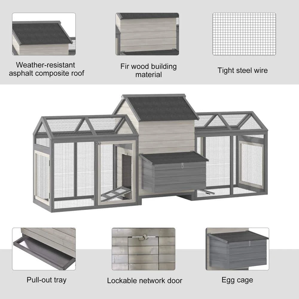 Treat your chicken to the good life with PawHut! This chicken chateau has a double run box design, which is both stylish and functional. This model includes both indoor and outdoor spaces for your chickens to enjoy while being protected from predators. Easily access the interior through the multiple doors and with the nesting box, perch, main house and more. This coop provides your hens with their very own poultry palace.