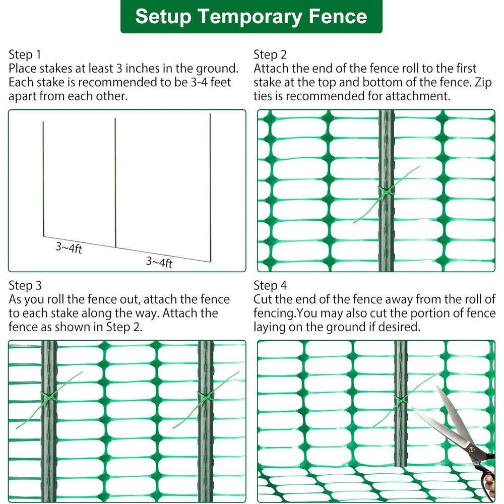 - Easy to install and remove, this temporary fencing is compatible with metal T-posts or wooden stakes, creating a sturdy barrier in minutes and conveniently rolls up for future use when not needed
