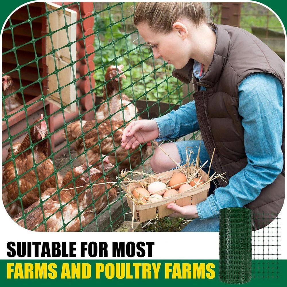 - 164 ft. long plastic safety fence, with 1.5 x 1.5 in. mesh openings, provides ample airflow and light, ensuring no animals pass through, protecting plants and poultry effectively