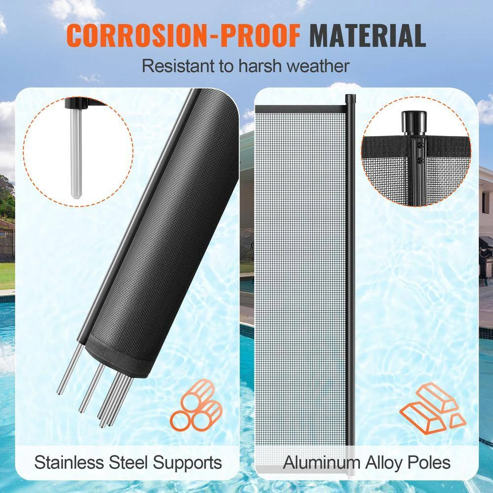 - Durable frame material crafted with premium stainless steel legs and aluminum pipes, our pool safety fence boasts a robust and long-lasting frame, resistant to corrosion and wear even on windy and rainy days, it ensures your pool’s safety
