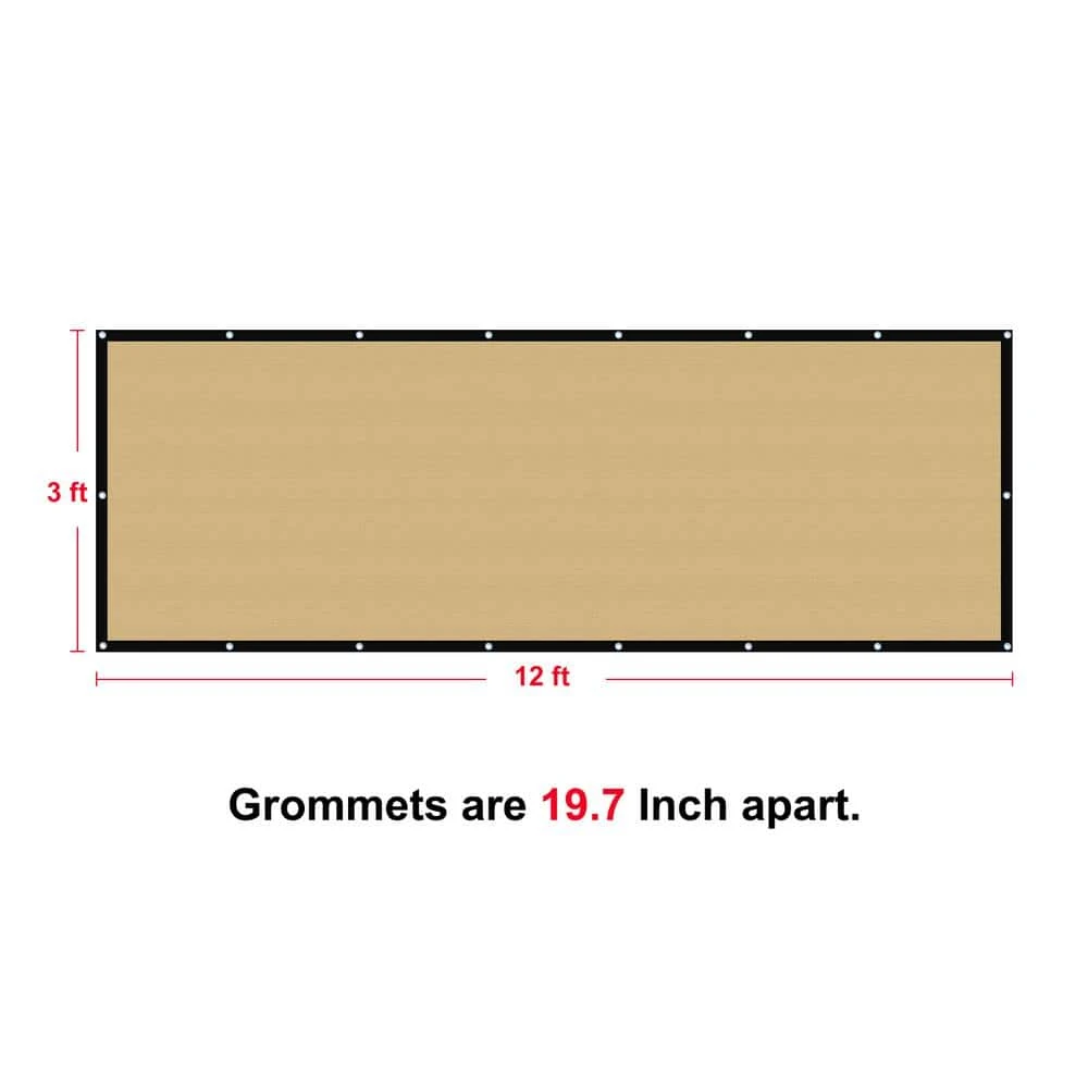 Privacy Fence Screen Heavy-Duty 90% Blockage Shade Cover Fencing Net For Wall Garden Gazebo Backyard, 3 X 12 Ft., Beige