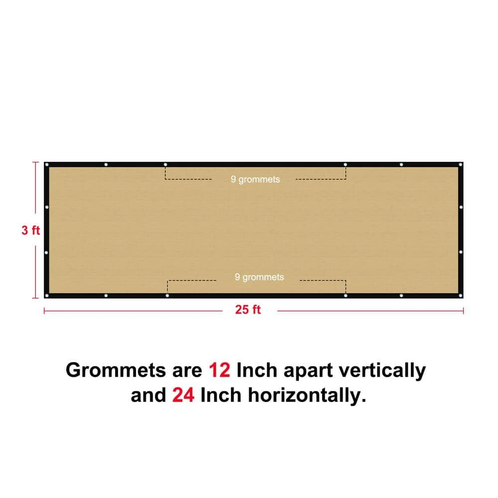 Privacy Fence Screen Heavy-Duty 90% Blockage Shade Cover Fencing Net For Wall Garden Gazebo Backyard, 3 X 25 Ft., Beige