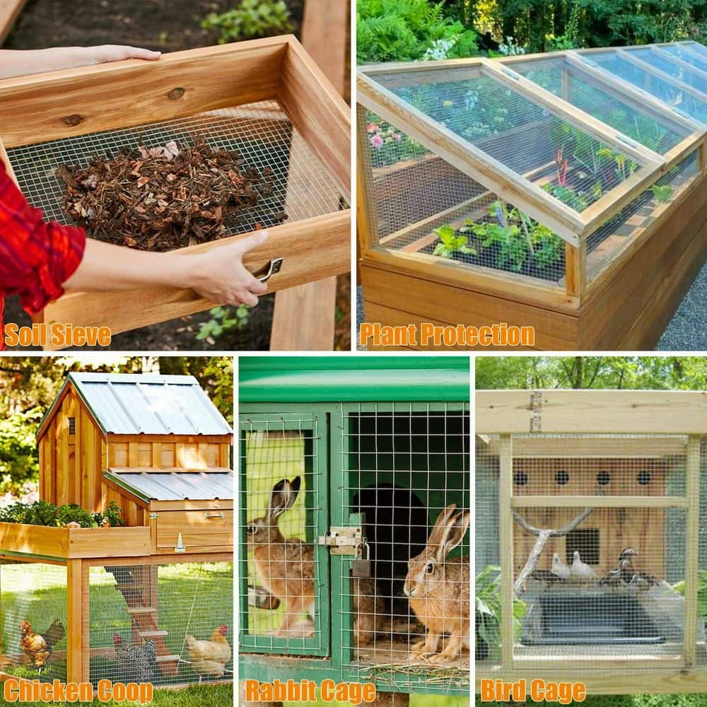 WRIGHTMASTER reinforced Anti-Rust galvanized wire mesh is hot-dip galvanized and is primarily used as a screen and fence. The mesh is cut with scissors and shaped to fit specific projects in your home or property, including window and screen door coverings, chicken coop fencing, raised flower beds, screens, rabbit/snake barriers, tree guards, gutters, under eaves, soil screens, gutter guards, flower beds, poultry fencing, home decor projects, craft creations, and more. You can turn it into anything you want. Use it to protect the roots, bulbs, rhizomes, etc. of vegetables and flowers from burrowing animals. It can be used to make individual baskets or line raised garden beds to allow drainage and root growth, keeps out rodents like mice, moles, snakes, and small animals like cottontail rabbits, and antelope squirrels, and provides excellent protection for vegetables, tomatoes and strawberries.