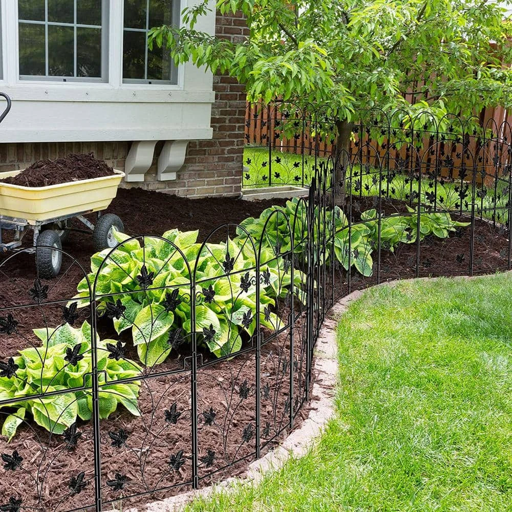 - 38 in. x 10 ft.: each metal garden panel measures 38 in. H and 13 in. W, a set of 10 panels totals 10 ft. L when connected, you can also buy multiple sets to extend its length, after installation, the height on the ground may be less than 24 in. because part of the fence is in the soil