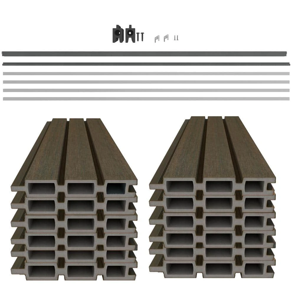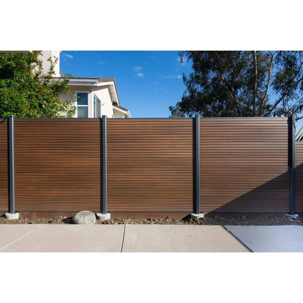 Our brand new 6 ft. x 6 ft. UltraEasy Composite Fencing System is the look of wood without the maintenance. We have made an ultra simple design so that all you have to do is put in the post then slowly drop in the boards from above. There are no screws visible on the surface of the fencing product therefore making a very sleek look. Metal color aluminum posts (sold separately) help to finish off and also accent the fencing panel. The posts come either in ground or on top of concrete. Fences don’t need to be boring. UltraEasy Fence upgrades your fencing system that is low maintenance, beautiful and long lasting.