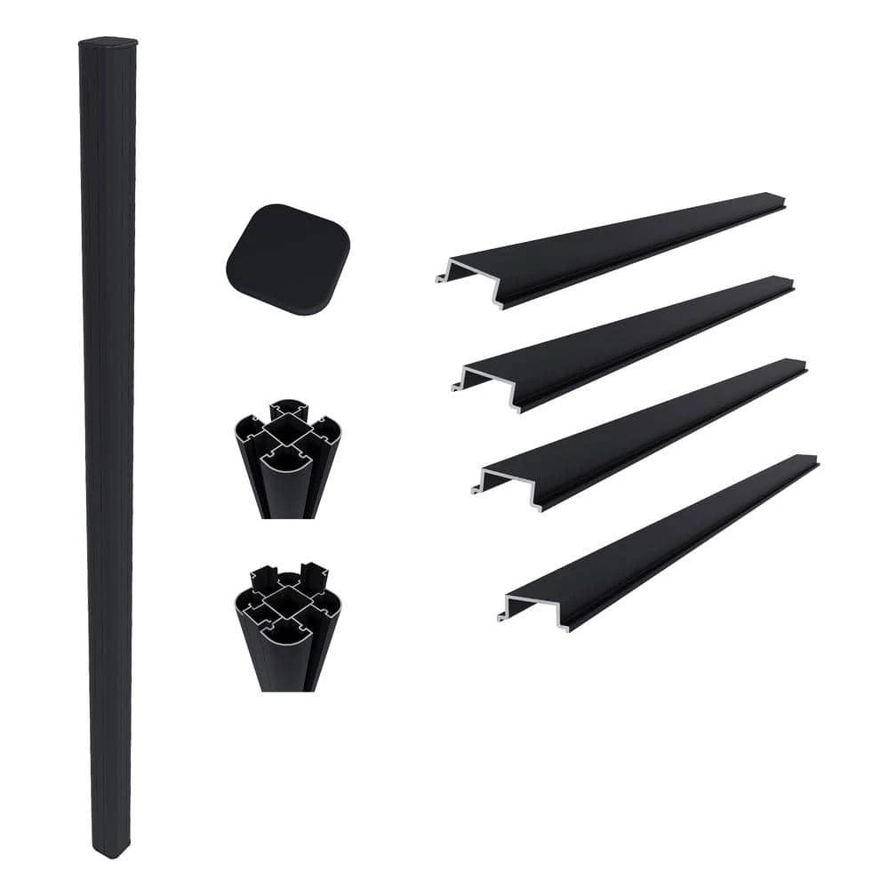 Our brand new 6 ft. x 6 ft. UltraEasy Composite Fencing System is the look of wood without the maintenance. We have made an ultra-simple design so that all you have to do is put in the post then slowly drop in the boards from above. There are no screws visible on the surface of the fencing product therefore making a very sleek look. Black aluminum posts help to finish off and also accent the fencing panel. The posts come either in ground or on top of concrete. Fences don’t need to be boring. UltraEasy Fence upgrades your fencing system that is low maintenance, beautiful and long lasting. This post is 8 ft. tall, but only 6 ft. is visible as 2 ft. will be in ground. This listing is for the Post that goes into grass and/or dirt.